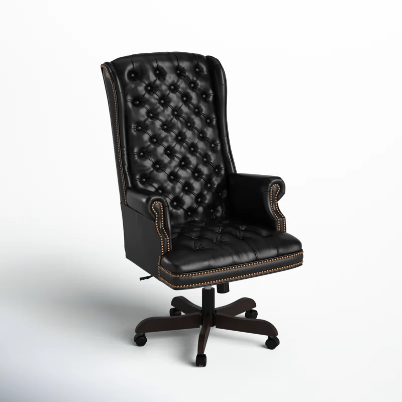 - Complete your study in a traditional style with this eye-catching chair. Showcasing a Chesterfield design, high-back, and nailhead trim, this lovely seat effortlessly elevates your ensemble.